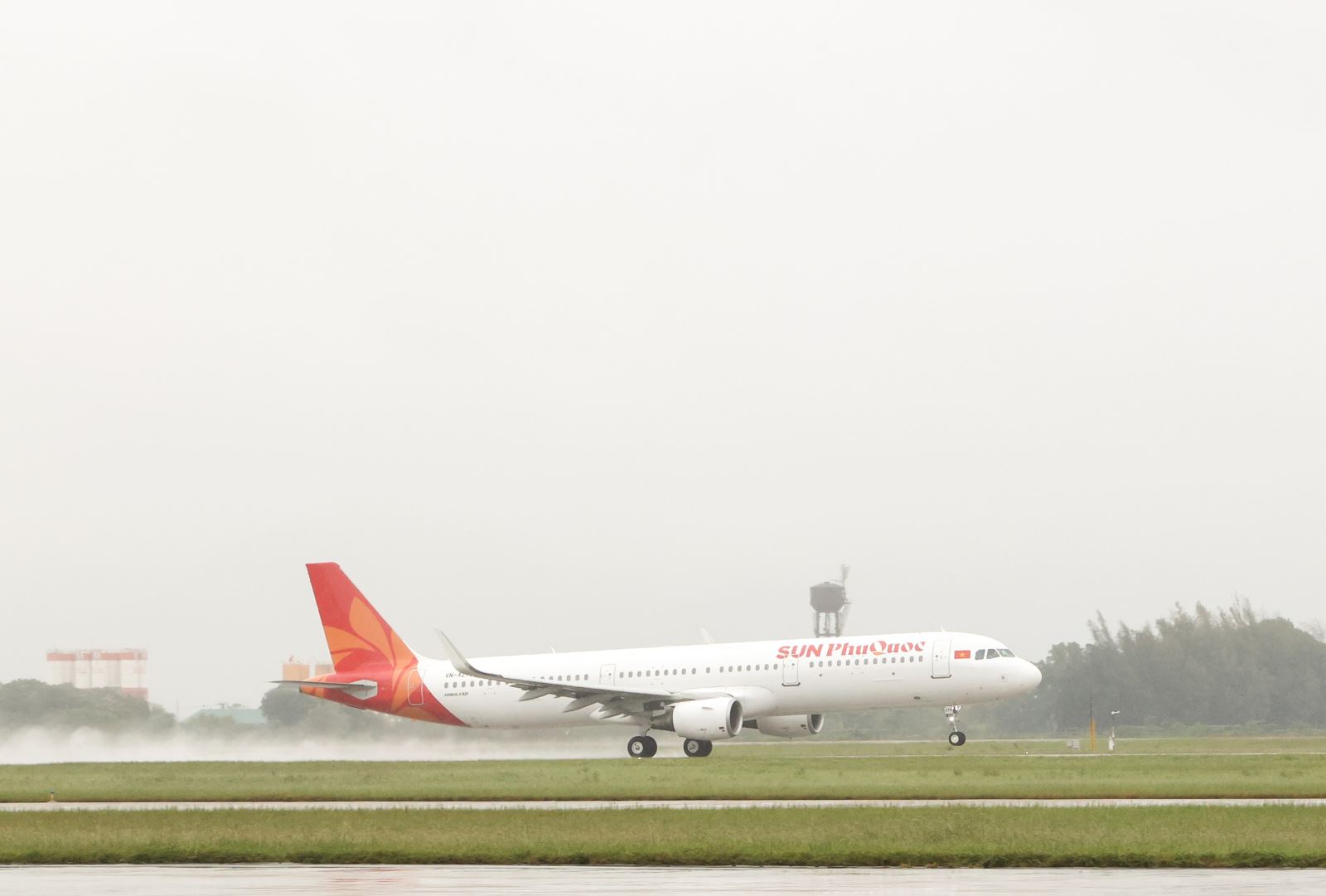 Cụ thể, vào lúc 7h15 sáng, chuyến bay thương mại đầu tiên của Sun PhuQuoc Airways đã rời đường băng sân bay Nội Bài, đưa 220 hành khách đầu tiên đến đảo Ngọc Phú Quốc trên chiếc Airbus A321. Các chuyến kế tiếp từ 8h50 từ Thành phố Hồ Chí Minh và 8h35 từ Đà Nẵng cũng cất cánh sau đó, đồng loạt hướng về tâm điểm Phú Quốc.